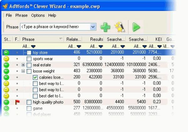 Приложение AdWords Clever Wizard создано для вебмастеров. Используя данный инструмент, вы сможете подобрать релевантные ключевые слова к своей тематике. Найти сходные слова, синонимы и дешевые запросы, для проведения эффективной рекламы Адвордс.