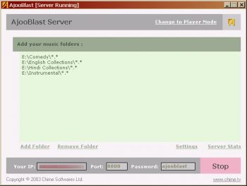 AjooBlast - это интересная программа, которая позволяет создать небольшой сервер на персональном ПК и загрузить туда wma, mp3 файлы. После этого, вы можете включить свой плеер или смартфон и прослушивать все песни в серверном режиме. Вы можете идти на работу, в школу, университет и любое другое место, прослушивая свои треки. Таким образом, нет необходимости загружать все песни под свой девайс и можно пользоваться неограниченным местом.