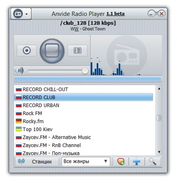 Anvide Radio Player - это простой и достаточно функциональный радио плеер. Для воспроизведения, достаточно выбрать необходимый канал и настроить громкость. Во время проигрывания, плеер показывает информацию о воспроизводимом треке и исполнителе.