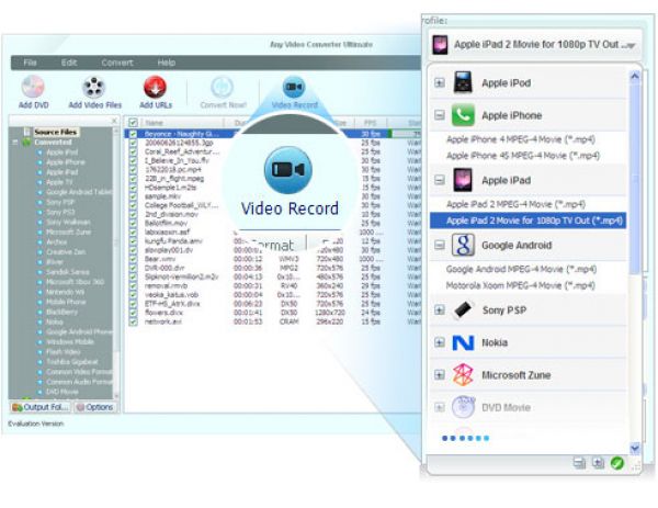 Any Video Converter Ultimate представляет собой приложение, которое можно использовать для кодирования видео различных форматов (в том числе MOV, MP4, DVD и MKV) в другие форматы(например, MP4, WMA, AVI, SWF, FLV).