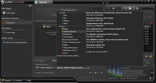 Audials Moviebox является удобным решениемдля архивирования DVD фильмов и конвертирования различного видео, которое было приобретено в Интернете или записано с телевизора.