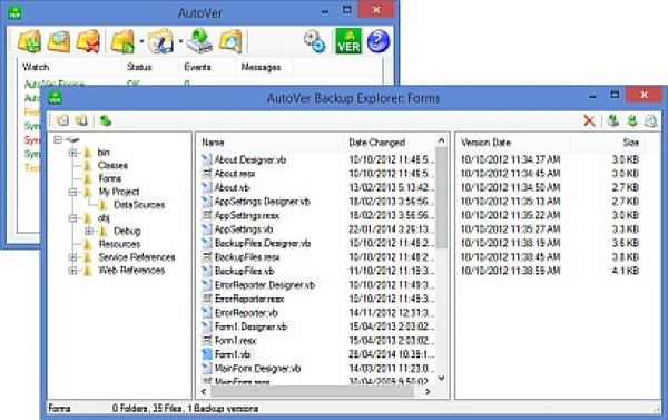 AutoVer - удобное приложение для создания резервного копирования. Утилита в автоматическом режиме следит за всеми изменениями в директории и создает бекап элементы при их изменении. Хоть приложение и не имеет русской локализации, оно весьма простое в управлении. Вам достаточно выбрать папку для наблюдения и директорию для сохранения бэкап файлов. После этого вам больше ничего не нужно делать.