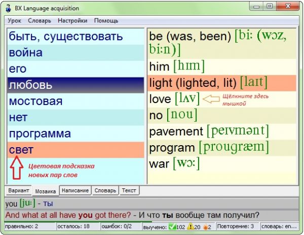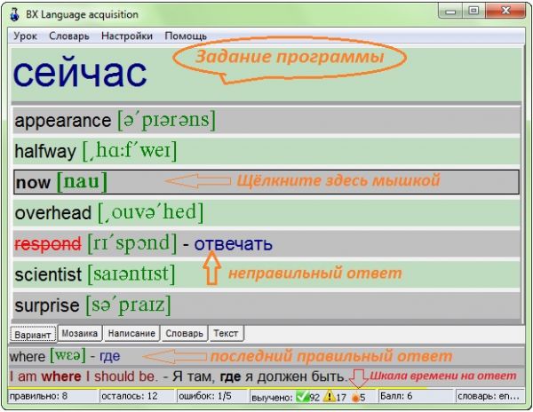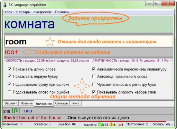 Программа BX Language acquisition предназначена для заучивания написания и произношения иностранных слов.