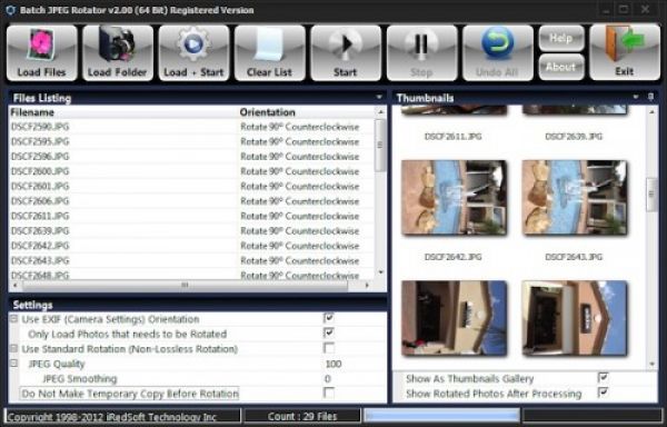Batch JPEG Rotator позволяет в пакетном режиме переворачивать фотографии в заданном пользователем направлении.