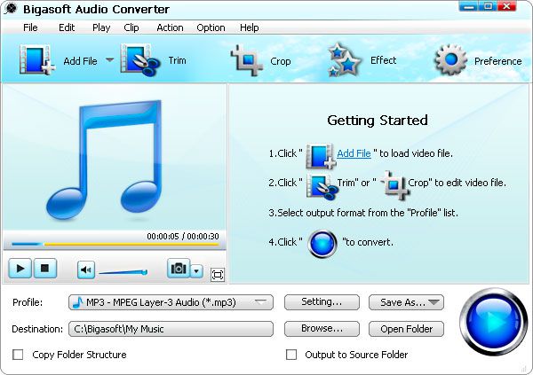 Bigasoft Audio Converter является простым в использовании аудио конвертером, который позволяет конвертировать ваши любимые песни между почти всеми форматами, включая MP3, WMA, M4A, AAC, AC3, WAV, OGG и т.д.