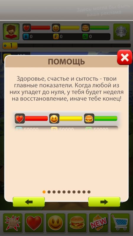 Суть симулятора жизни бомжа состоит в том, чтобы не умереть. Каждый день у вас уменьшается сытость, здоровье и настроение. Рыться на помойке, собирать мукулатуру, попрашайничать в переходе, воровать магнитолы и другие эффективные методы выживания станут вашими верными помошниками на протяжении всей игры.