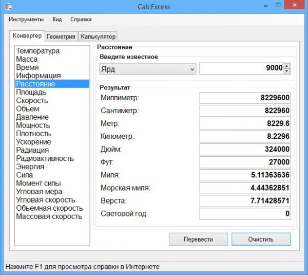 CalcExcess - приложение для геометрических и математических вычислений. Здесь можно использовать конвертер величин, обычный калькулятор и вычислять прочие геометрические фигуры. Всего же программа включает в себя 815 формул.