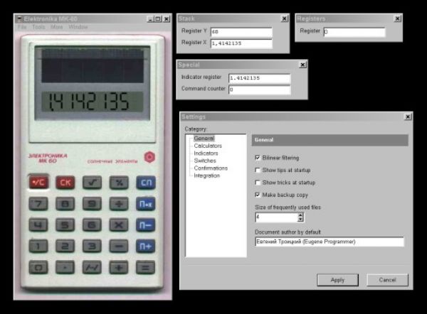 Calculators 3000 - это современная интерпретация калькуляторов советских времен. Например, установив данную утилиту, вы сможете воспользоваться прототипами: МК-52, Б3-34, МК-61 и другими.