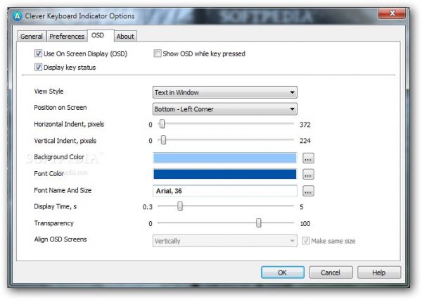 - Отображение состояния о включенной/выключенной раскладки, в виде информационного окна.
