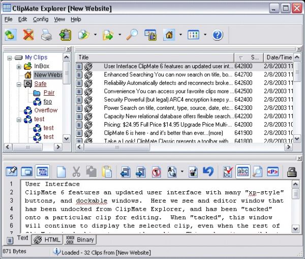 Клипмейт в значительной степени расширяет стандартные возможности среды Windows, в области буферного копирования информации. Данная утилита будет незаменимой, если вы часто копируете информацию и вам приходиться использовать повторяющиеся данные.