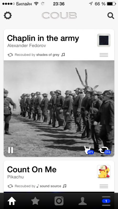 Coub - официальное мобильное приложение популярного сайта Coub.com. Главная идея приложения и сервиса состоит в возможности создания и публикации короткого видео до 10 секунд. Проект аналогичен мобильному приложению Vine. Ролики могут иметь также и звук, причем звук не совпадающий с тематикой ролика. Именно эта возможность подмены звука часто используется для создания смешных роликов.