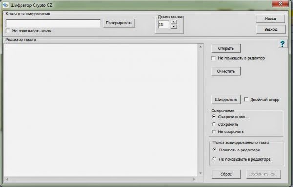 Crypto_CZ будет интересна пользователям, которые заботятся о безопасности записываемых файлов. Утилита имеет простой интерфейс и легка в использовании. Допустим, у вас имеется готовый текст, который вы хотите защитить от посторонних взглядов. Вам будет достаточно запустить утилиту, вставить в неё данные и зашифровать их, после чего перенести их в блокнот и сохранить.