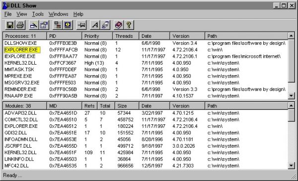 DLL Show - это утилита, предназначенная для создания подробного списка всех текущих запущенных процессов на вашем компьютере, а также связанных с ними DLL компонентов.