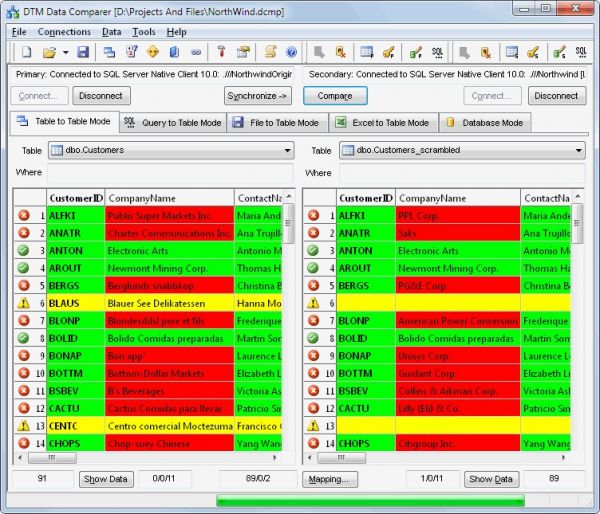 DTM Data Comparer - это универсальная утилита, для синхронизации и сравнения баз данных. Программа поддерживает интерфейсы: IDAPI, ODBC, Oracl, OLE DB и другие. Благодаря этому, обеспечивается доступ к большому типу современных баз.