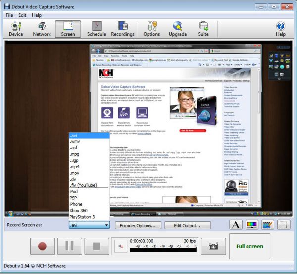 - Запись в: mp4, avi, asf, wmv, mov, 3gp, mp4 и других.