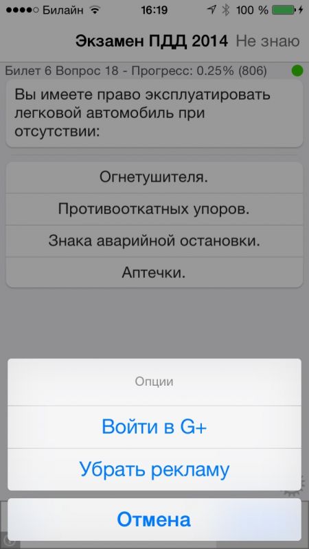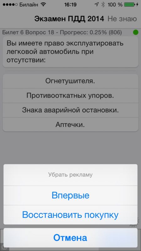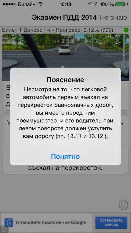 Экзамен ПДД 2014 - бесплатный тренажор для сдачи экзамена, однако внизу приложения показывается рекламный баннер. Чтобы он не мешал, можно убрать его за деньги, или не убирать, если денег жалко.