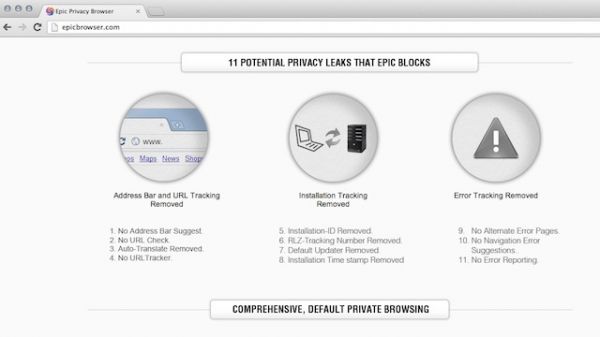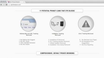Epic Privacy Browser - это новый браузер, который основан на платформе Гугл Хрома. В отличие от большинства подобных утилит, разработчики сделали упор на конфиденциальность. В данном браузере не ведутся куки, нет запоминания адресов сайтов, отсутствуют подсказки в адресной строке, деактивирован автопереводчик, не сохраняются истории посещений и пароли.
