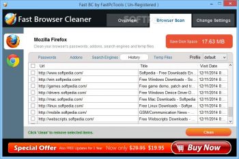 Fast Browser Cleaner - специализированное приложение, созданное для очистки ваших веб браузеров от лишней информации. Приложение автоматически ведет поиск всех установленных браузеров на ПК и предлагает выполнить ряд действий, по очистке вашей оперативной памяти.