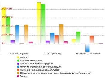 - значений коэффициентов, рассчитанных по финансовым показателям (автономии, соотношения заемных и собственных средств, обеспеченности собственными средствами, маневренности, финансирования);