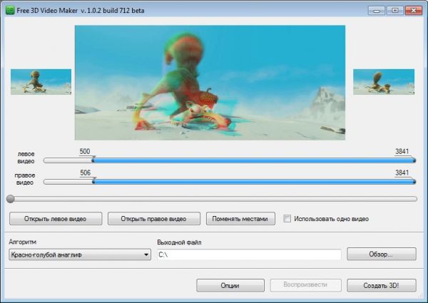 Используя Free 3D Video Maker, вы можете создать 3D видео используя один или несколько файлов. Если у вас имеется два видео с небольшим горизонтальным смещением при записи, вы можете объединить их в один файл и получить объемную 3D картинку. Однако можно взять и одну запись для редактирования.