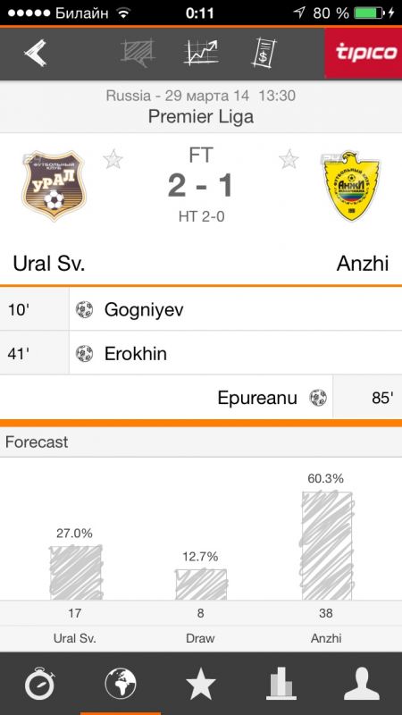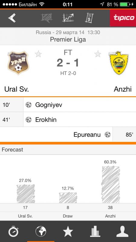 Заказать разработку мобильного приложения похожего на Futbol24