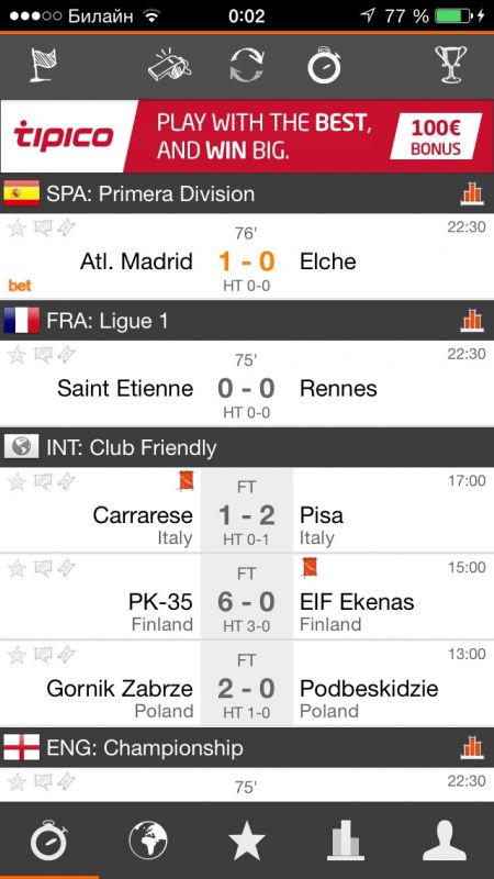 - Уведомления о новостях любимых команд.