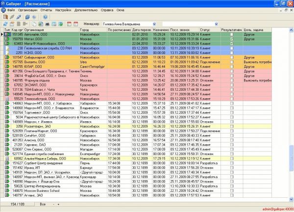 - Автоматическое составление расписания контактов менеджера – менеджеры не только не забывают позвонить важным Клиентам и Заказчикам, но и, по отзывам, успевают сделать на 30% больше. Galloper CRM – единственная в своем классе CRM система, позволяющая задать свой алгоритм составления расписания, чтобы в первую очередь звонить туда, где вероятность сделки выше - это значительно увеличивает продажи.