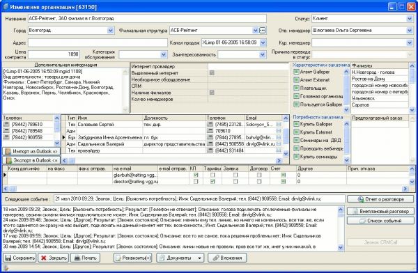 - Эффективный учет – информация никогда не теряется (даже при увольнении менеджера), а уникальный способ отображения информации о Клиенте на одном экране обеспечивает быстрое восстановление истории и особенностей взаимоотношений с данным клиентом, включая запись телефонных переговоров. В других CRM системах информация размазана по многочисленным закладкам.