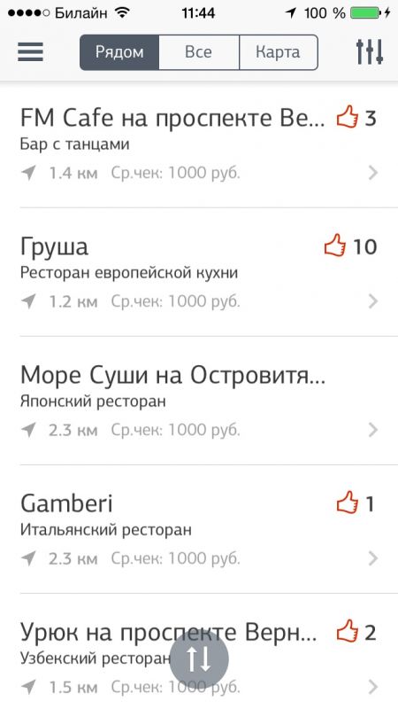Геттейбл - мобильное приложение со списком ресторанов в Москве. Показывает ближайшие рестораны и ночные клубы. К каждому ресторану можно оставить отзыв и прочитать отзывы других пользователей приложения. Можно забронировать столик прямо из приложения. Можно добавлять любимые рестораны в избранное. База приложения составляет порядка 600 ресторанов.