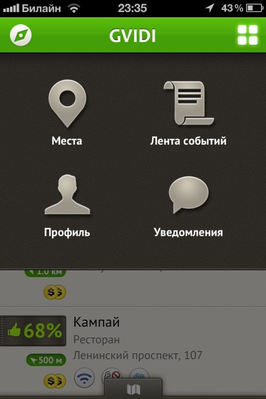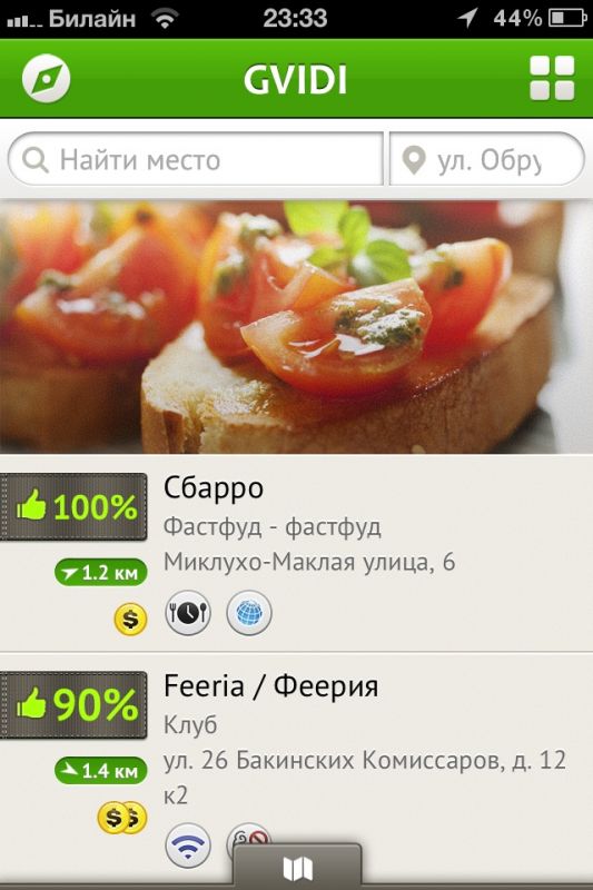 1. Огромная база различных заведений, вроде баров, кафе и ресторанов