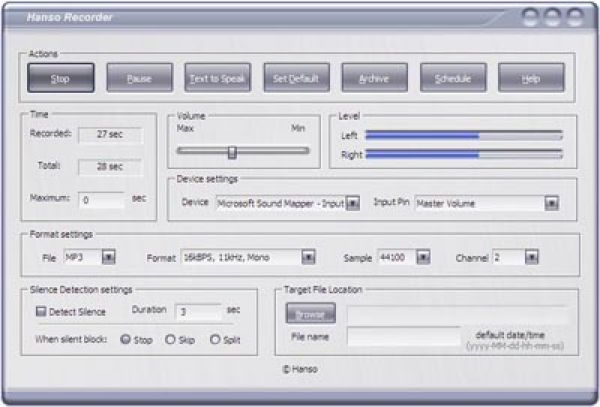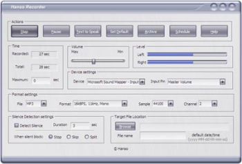 Hanso Recorder представляет собой приложение, которое может извлекать аудио из онлайн ТВ передачили и интернет-радио, записывать ваши собственные аудио файлы или конвертировать текст в речь.