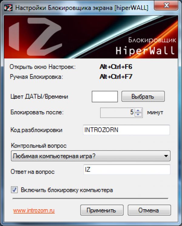 Данный программный продукт , разработанный русским программистом сообщества интрозорн (introZorn) служит для того, чтобы блокировать доступ к своему компьютеру, пока вас нет рядом с ним. Разблокировка компьютера производится вводом пароля, который вы придумали.