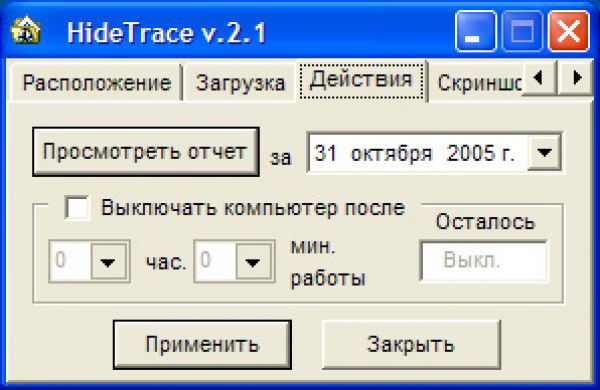 Hode Trace - это программа для ведения логов и отслеживания действий, выполненных за ПК во время вашего отсутствия. Таким образом, утилита записывает, когда было открыто окно, фиксирует время запуска и записывает необходимые данные. Также имеется возможность принудительно закрыть все приложения, когда отведенное время подойдет к концу. Данная функция будет полезна родителям, которые следят за своим ребенком.