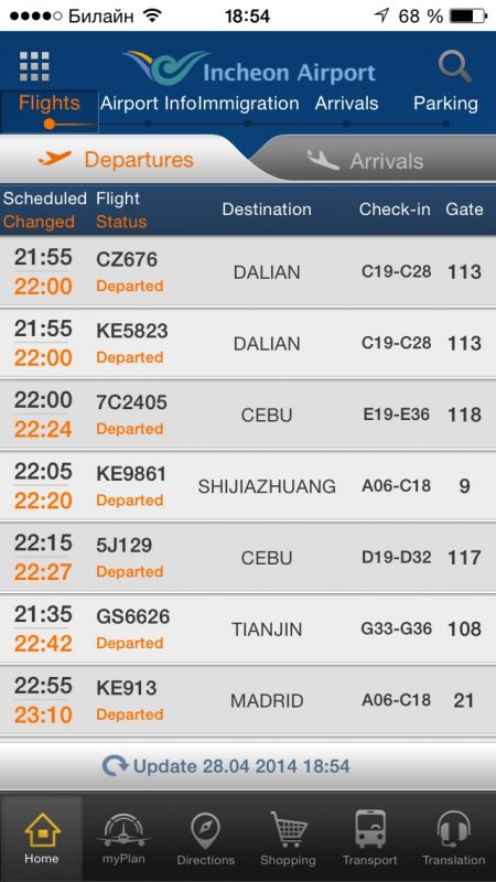 - Онлайн табло рейсов в аэропорте Инчхон.