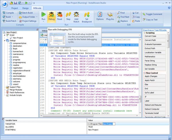 Устраняйте ошибки в ваших установочных файлах при помощи встроенного отладчика.