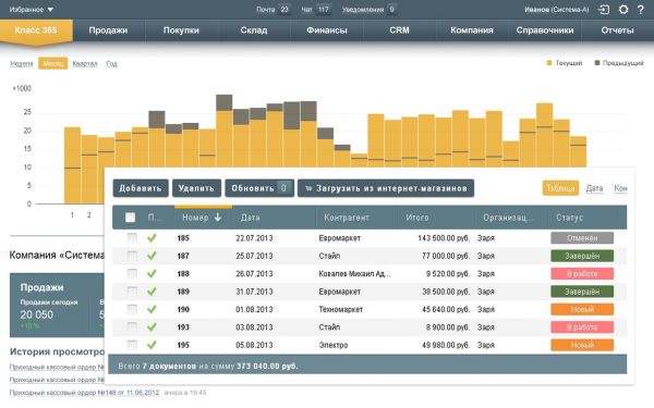 Класс365 автоматизирует управление всей компанией. Организуйте эффективную работу с клиентами, партнерами и персоналом, управляйте движением товаров и денежных средств.