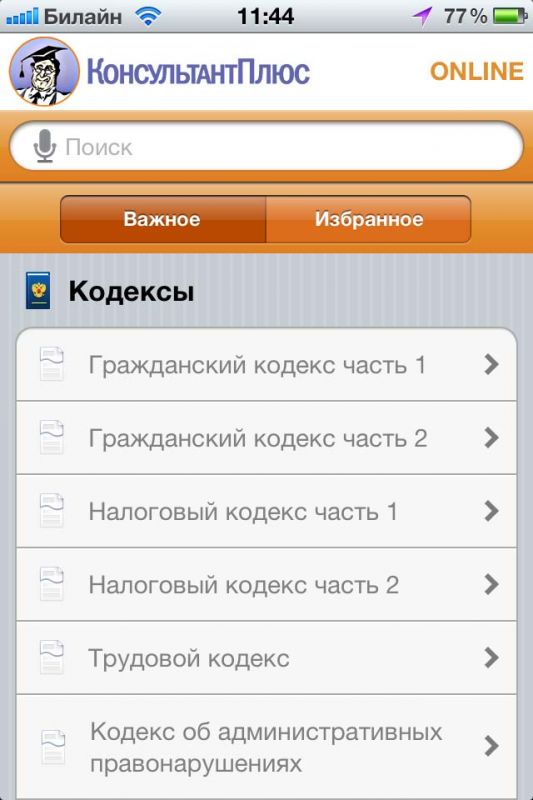 Заказать разработку мобильного приложения похожего на КонсультантПлюс: основные документы