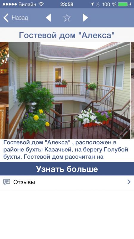 В основном представлена информация о различных заведениях с контактами, адресами и телефонами. Все заведения нанесенены на карту Крыма, что позволяет быстро понять, где заведение находится.