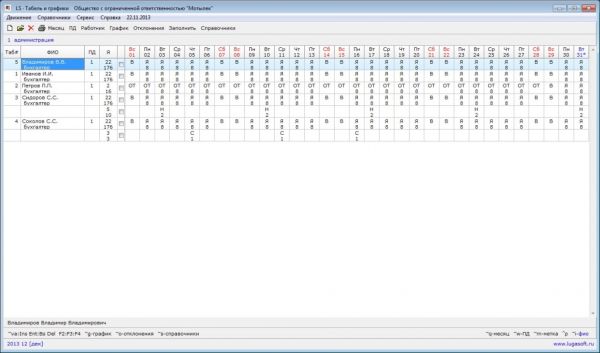 "Учет рабочего времени и создание графиков работ(сменности) работников организации или индивидуального предпринимателя.