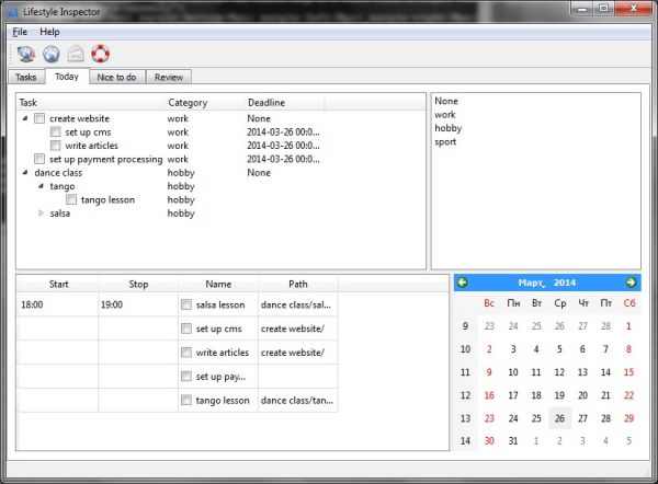 Lifestyle Inspector - это специализированное приложение для занятых людей. Оно также может пригодится вам, если вы мыслите стратегически и планируете свои дела заранее. Как вы наверно догадались, это новый планировщик дел. Программа избавит вас от запоминания ненужных задач и дел. Она будет вовремя информировать вас о текущих делах и позволит сконцентрироваться только на необходимых решениях и задачах.
