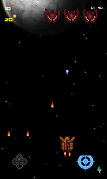 Космическая аркада в которой предстоит пролетать между летящими астероидами и сражаться с пришельцами. За заработанные в игре денежки можно улучшать характеристики корабля, чтобы пролететь еще дальше и быстрее расправляться с пришельцами. Собирайте ключики ремонта для того чтобы починить поврежденный в бою корабль. Управлять можно как поворотами планшета (телефона), так и включить джойстик после чего появится элемент управления с помощью которого также можно поворачивать и летать. Цель игры пролететь как можно дольше.