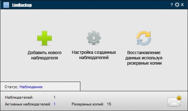 Бесплатная, мощная и в то же время простая в использовании программа для резервирования и восстановления данных на компьютере. В программе можно настроить неограниченное количество записей, называемых в программе "Наблюдатели", которые можно настроить, как на создание резервирования по времени, так и по изменению данных. В программе имеется большое количество настроек для Наблюдателей. Мы долго разрабатывали и тестировали программу LimBackup, чтобы выпустить по настоящему классную утилиты для резервирования данных и у нас это получилась. Программа LimBackup с легкостью может конкурировать с многими платными программами схожего характера.