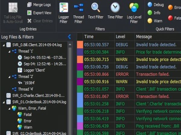 Ищете простой в использовании просмотрщик логов? Просмотр лог-файлов в текстовом редакторе требует много времени и терпения. Это тяжелая работа. В результате мы, вероятно, уделяем анализу логов не так много времени, как должны. А зря, поскольку вы многое можете узнать о поведении вашей программы во время ее работы с помощью просмотрщика лог-файлов и исследования вашего лога. Log Viewer Plus - это профессиональный просмотрщик логов, который: - Быстрый и простой в использовании - Разработан специально для просмотра лог-файлов приложений - Визуально привлекательный для более быстрого выявления ошибок - Имеет встроенные инструменты фильтрования и анализа - Работает с данными в реальном режиме времени - Поддерживает работу с лог-файлами большого размера - Похож на Tail и Grep, но только для Windows - Полностью поддерживаемый Мы знаем как сложно выжать максимум из вашего лог-файла. Текстовые редакторы - не лучшие инструменты для просмотра логов, поскольку они разработаны для редактирования текстов, а не для поиска багов! Использование просмотрщика логов делает работу по анализу логов легкой. Попробуйте Log Viewer Plus и сообщите, что вы о нем думаете. Если у вас возникли какие-либо вопросы или проблемы, не стесняйтесь обращаться к нам.