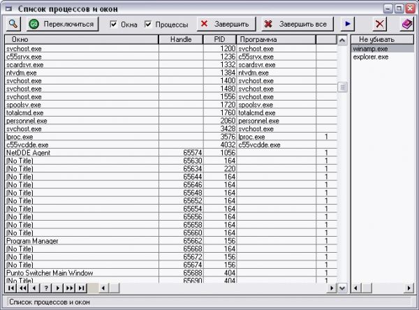 Приложение LProc предназначено для завершения работающей программы и несистемных процессов. Утилита имеется два режима управления: оконный интерфейс и командная строка. В любом случае, вы можете просмотреть все запущенные процессы и завершить необходимые. Также имеется функция "убить все", в результате чего, будут закрыты все приложения в принудительном режиме.