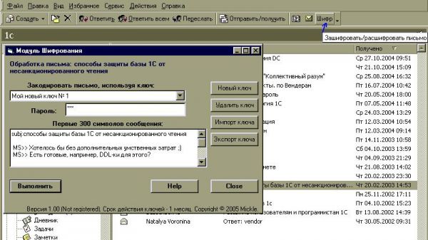 Если вы беспокоитесь относительно ваших писем посылаемых через MS Outlook, тогда вам пригодится приложение M-shfrator. Данное приложение шифрует письма, используя пароль и ключ. Для каждого отправителя можно создать уникальный ключ и использовать шифрование, которое не будет пересекаться.