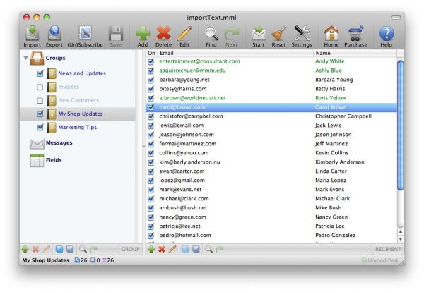 Mac Mass Mailer - это специальный инструмент, созданный для рассылки сообщений с Макентош. Используя данную утилиту, можете быть уверены относительно надежности доставляемой почты и работать с несколькими списками одновременно. Вы праве воспользоваться несколькими форматами: гипер-текстом, простым текстом и цветным текстом.