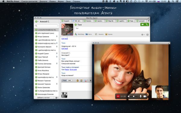 Mail.Ru Агент – это бесплатное приложение от Mail.Ru, позволяющее обмениваться мгновенными сообщениями с другими пользователями, которых насчитывается более 23 млн человек в России и во всем мире.