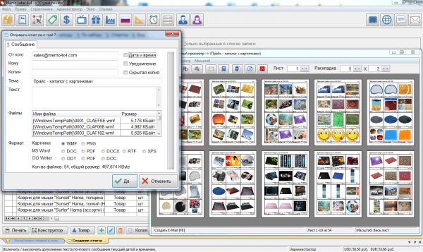 - Возможность загрузки картинок с образцами товаров из файла, буфера обмена, Web-камеры;