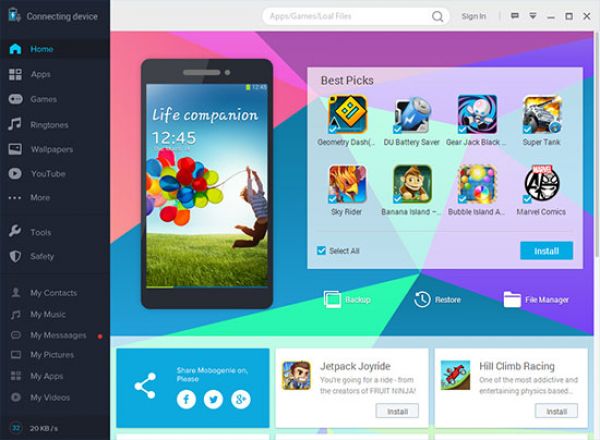 Mobogenie - это одно из самых актуальных и лучших приложений, с помощью которого можно управлять всем Андроид контентом через ПК