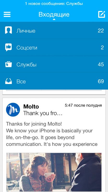 Molto - современное красивое приложение для работы с почтой от создателей известного почтового приложения Incredimail.